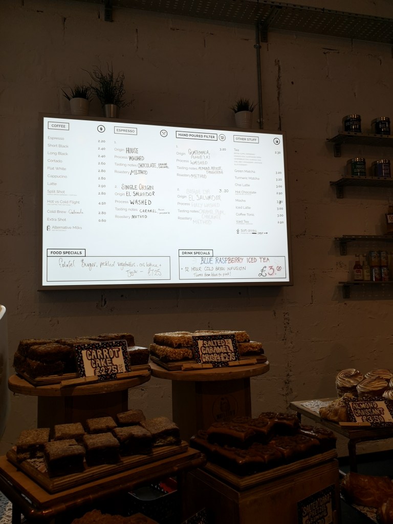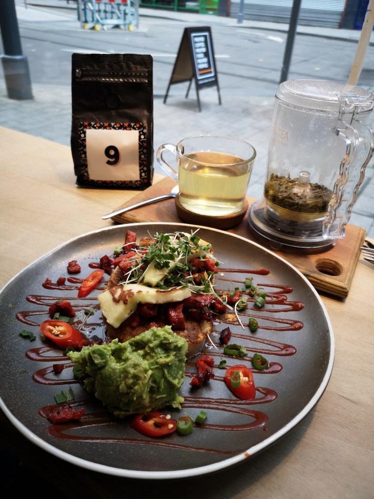Arriving just before lunchtime with a Wayland’s virgin (My good OL’ pal Bridge) we settled right down and grabbed a menu. It was around 12 pm, few people in there but not raving busy. The interior inside is very urban, almost feels like your dining in a warehouse with a few botanicals touches here and there. I like how it is quite minimal and it’s a light spacious venue with a generous offering of seats and tables. Every table displays a food menu and the drinks menu is right behind the till with a variety of pastries and cakes on offer. It’s order at the till service and they are pretty sharp with the service, my tea came within 2 minutes.