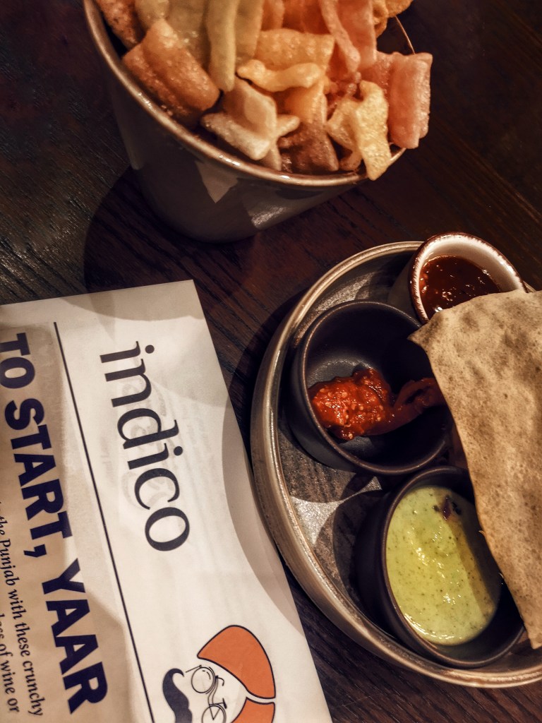 Indico is an Indian street food restaurant offering the flavours of Punjab to all of us looking to expand our culinary palettes! Indico opened there first restaurant in Shirley and the restaurant has received an award-winning status and now, Indico has opened there second restaurant in the Mailbox in Birmingham. Located in a great location sitting right opposite Bar Estillo, becoming the Mailboxes only Indian restaurant. We made sure we booked and it was lucky we did because come 6 pm it started to quickly fill up. Vibrant, bursting with colour and beautifully decorated, each table displays a teapot cannister that gives it that personal eastern touch to each table. We were greeted with smiles straight away and shown to our table and handed menus.