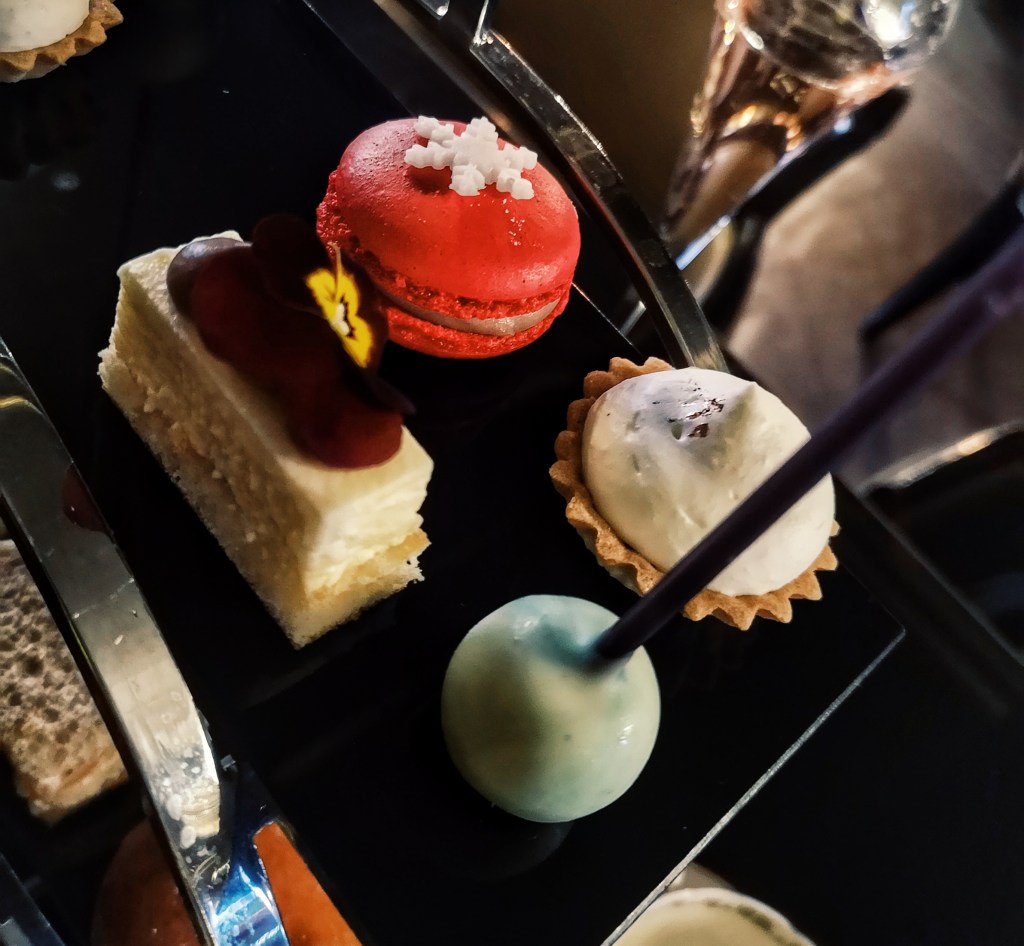 The afternoon tea arrived showcasing a variety of sandwiches and desserts, from turkey and cranberry mini baguettes to cheese and chutney crackers, and egg and cress brioche rolls, however, my brioche roll was simply missing the filling. This was rectified and a new brioche roll with filling came out within a minute. The deserts are small yet satisfying, jam-packed with a variety of flavours from raspberry, passion fruit, lemon and caramel. All flavours that pack a powerful punch to your sweet tooth. Soon as the sandwiches and desserts were gobbled down, The tea was served with the Scones and mince pies next. It would have been nice for the tea to be served with the afternoon tea sandwiches however this maybe because we didn’t mention anything and we could have had the option. A very generous pot of tea that gave me 3/4 cups of tea and our waiter also mentioned if we want any more to just ask. The scones were just the right texture and size, not like some mutilated scones you see in some places, I found they were also not that heavy on the stomach so I could eat a scone at peace and not be struggling for breath to fit it in my gob. A variety of sized mince pies that were same as the scones not too heavy and very delicious.