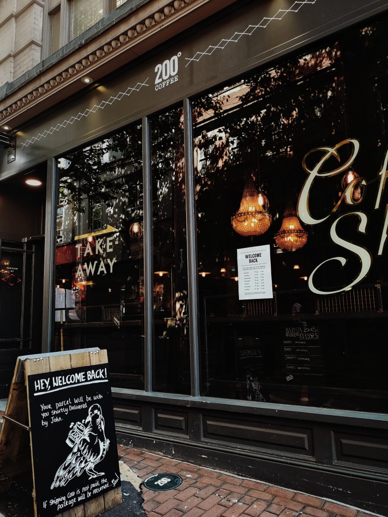 A couple of coffee shops we walked past in Brum had queues outside such as Faculty and Java, Everyone was keeping their distance and I saw one or two employees standing outside making sure people were too., We headed to 200 Degrees which was completely empty, so weird, this place is always packed out! Social distancing procedures have been put in place in 200 Degree (floor markings, sanatizer stations) and I felt very safe in there ordering my drink. Instead of opting for the coffee I went for their summer drinks range and opted for a summer berry smoothie which was mighty refreshing as it was bloody hot as hell day! And do you know whats nice to see? smiles, Its’ nice to see that the impact of the virus hasn’t broken employees’ spirits, There are still smiles a bout.
