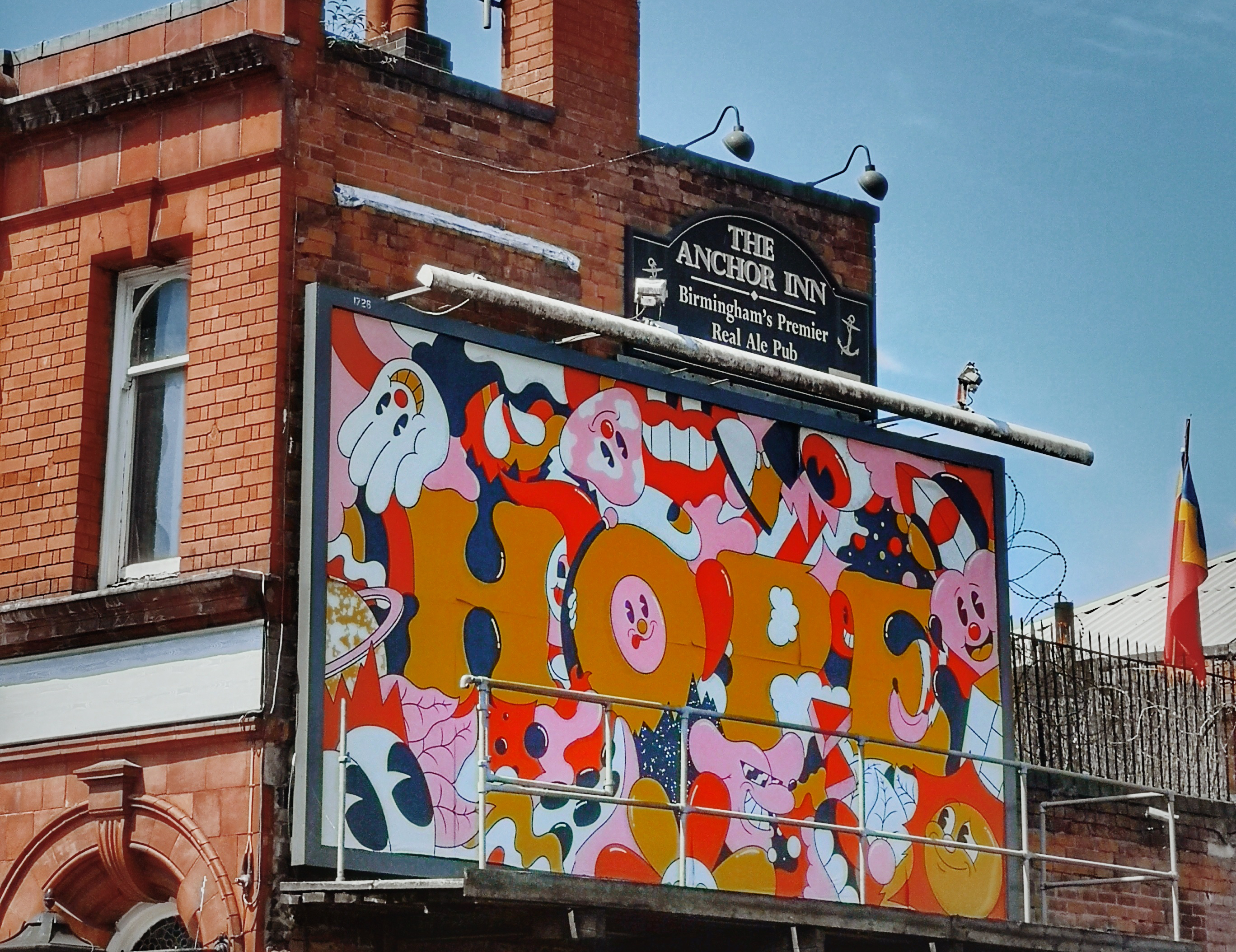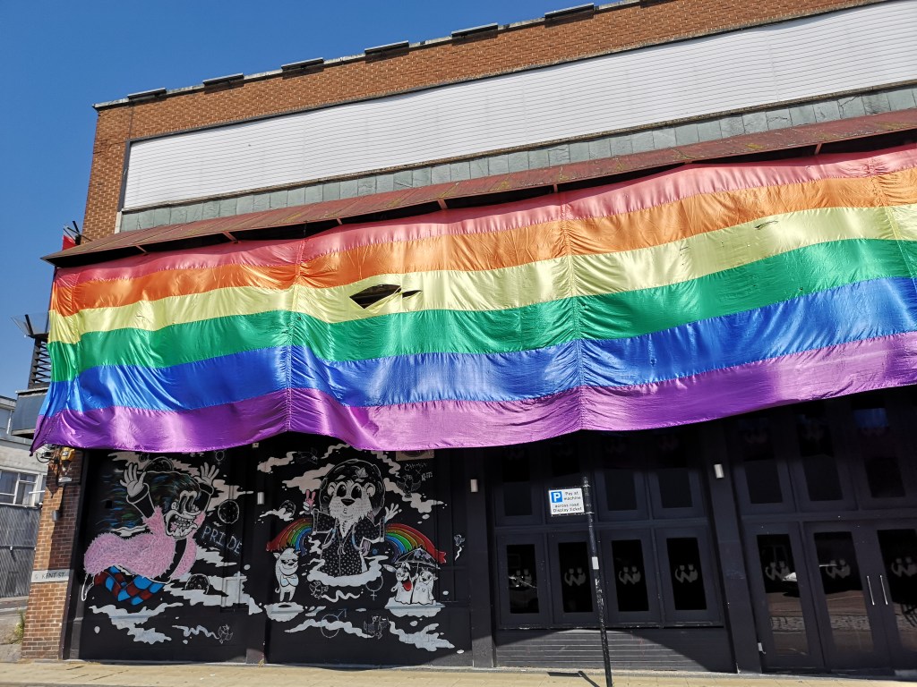 Now Digbeth was a bit of a ghost town, it was 1 pm and no one was about just business owners having their meetings and the one group of builders eating their sorry wife’s lunches. Many businesses in Digbeth are not open, I know this week they will be so there is a lot of meetings taking place implementing safety procedures and so on. It’s so strange because whenever I am in Digbeth it’s absolutely thriving with creatives, you always bump into a street artist, photographer, or a tv crew. However, what’s so nice to see is the street art and some added additions to this colorful urban village. The blue NHS heart sign, the Hope artwork, and the massive Co-vid wall art, all are very impressive. Businesses such as Birdies, Ghetto Golf, The Night Owl and so on are all closed still, but I still couldn’t hold my excitement of walking past these once lively places and reminiscing of my drunken times there “Oh look that’s where I found a Marks and Spencer’s sandwich!” They may be closed for now but boy, the memories are still alive and well