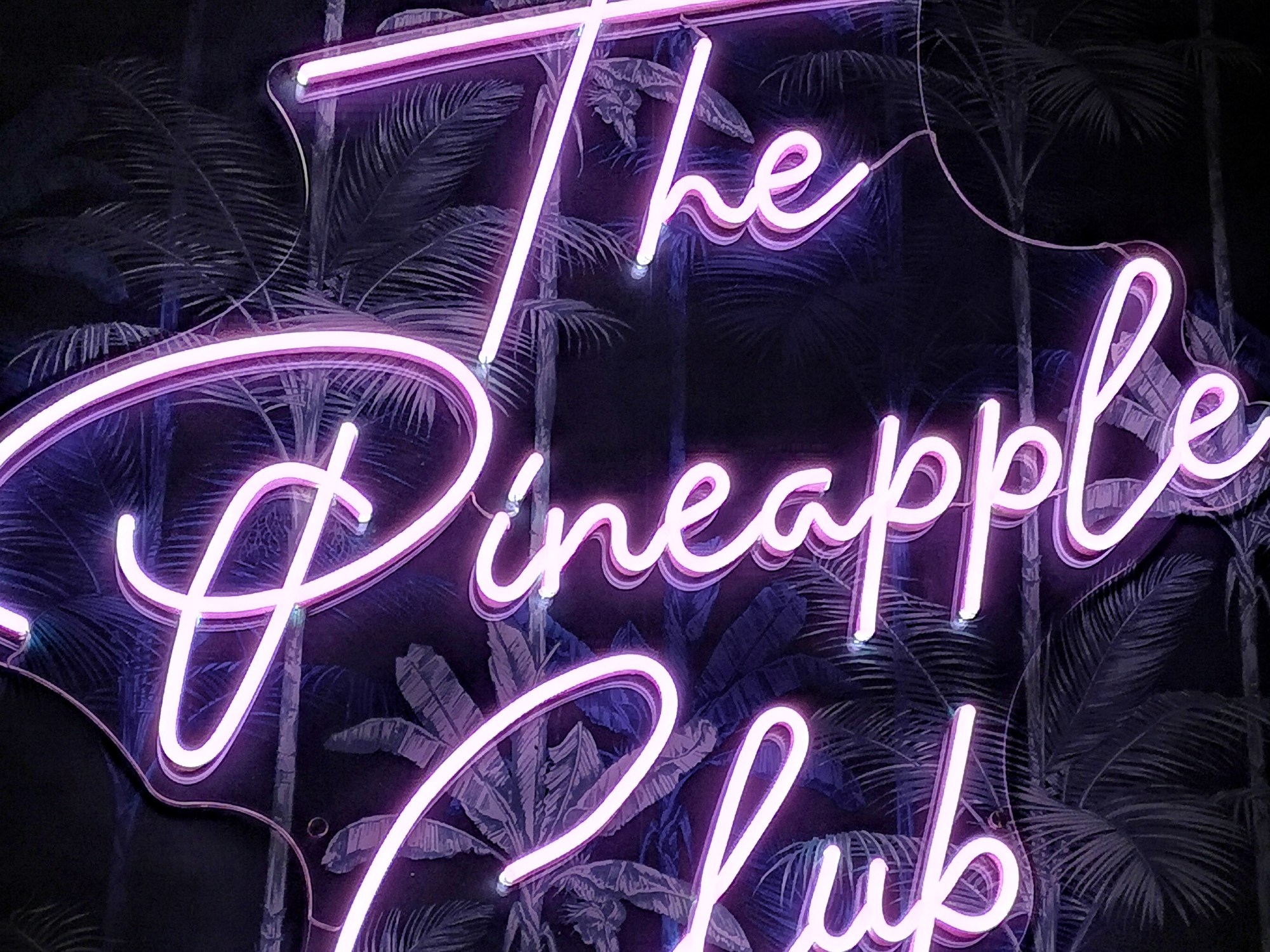 Opened in September, bookings are filling up quite fast so I managed to book in for early October on a Friday from 5.30 pm to 7 pm for drinks and food. Arriving at The Pineapple Club you enter into the shop where they sell a variety of wines and cheeky alcohol beverages, looking a little bare yes, but its quality over quantity here Bab and there is quite the impressive selection of booze on offer. Walking up the stairs you are hit with botanical and pink neon scenes that is sure to make you eye lit up!