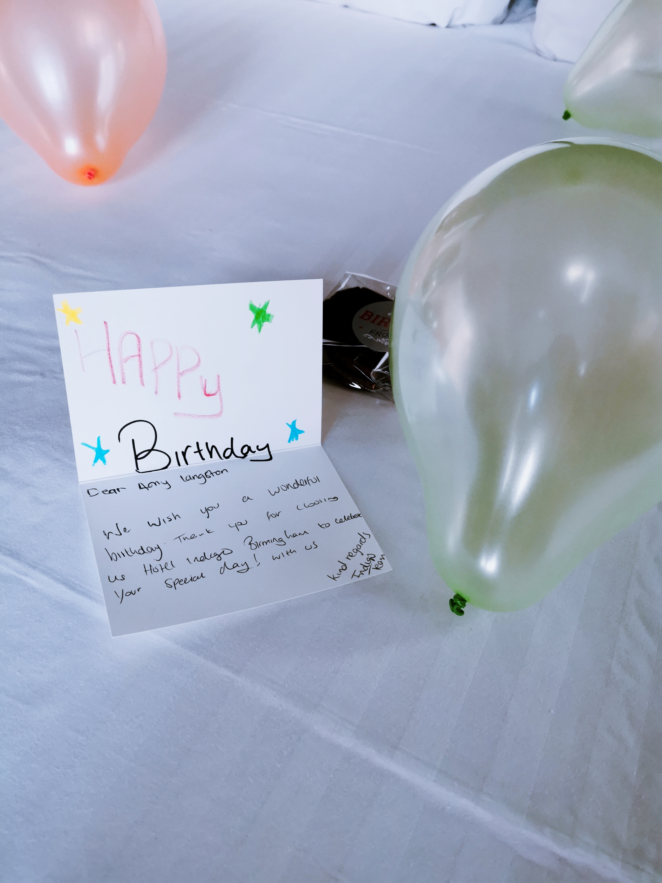 A massive thank you to the staff at the hotel for making my birthday so magical this year especially with the current circumstances, they still managed to deliver above and beyond. Hats off to you all for delivering exceptional service, sticking to Co-vid guidelines and ensuring the safety of their guests. A stay at Hotel Indigo is essential when visiting Birmingham, guaranteed to give all guests a stunning and memorable experience without burning a hole in their pocket!