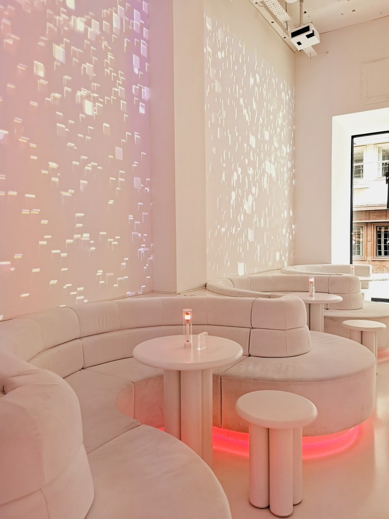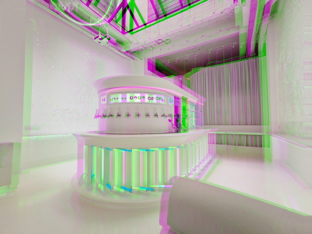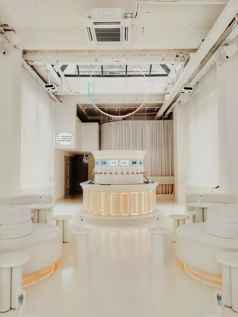 Upon arrival you will step into an episode of Black Mirror, a long room featuring spacious seating and table areas, projector walls, a departure board (very much like you see at the airport) and a self-service bar featuring beers and cocktails that you pour. We sat down and one of the staff members sat with us and explained the whole concept and how we play the games. “You won’t have ever experienced this” I was intrigued straight away; I am always looking for something new and exciting and five minutes in, I felt like Otherworld was going to give me that. We never booked online so we had to do it there and then, so it took around five minutes to do. We waited around ten minutes and then we saw our names flicker onto the departures board and were advised that it’s time to depart for Otherworld. I made a quick dash to the bathroom which was psychedelic; neon lights, robotic toilets that you can control with a remote to spray your bum and dry it, a robotic voice telling you to relax and unwind, and I couldn’t help myself, I just thought I got to have a poo in here…Most relaxing toilet experience ever.