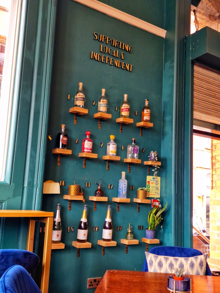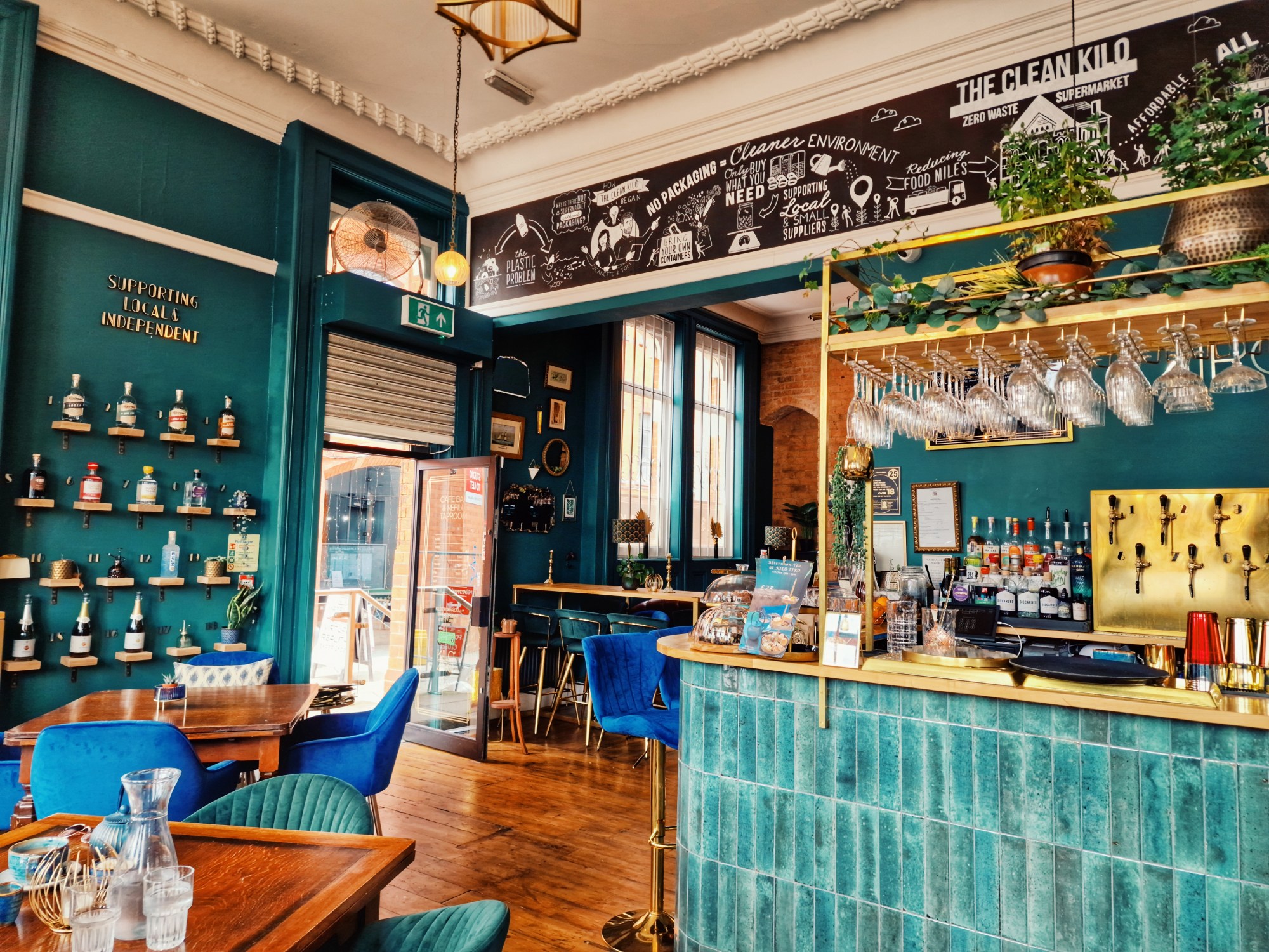 Currently hidden behind those pesky roadworks at the Custard Factory, it is easily missed and it’s a great shame because this place is a true gem. What was once the Clean Kilo, a zero-waste supermarket that focuses on reducing waste and your carbon footprint has now transformed into the “UK’s first zero waste café bar and refill taproom”. I have to say, as soon as I stepped in Kilo Ziro I was blown away at how beautifully decorated it is throughout. The 1920s aesthetic sits at odds with the grunge exterior of this corner of Digbeth. But delightfully so. Kilo Ziro is not afraid to stand out.