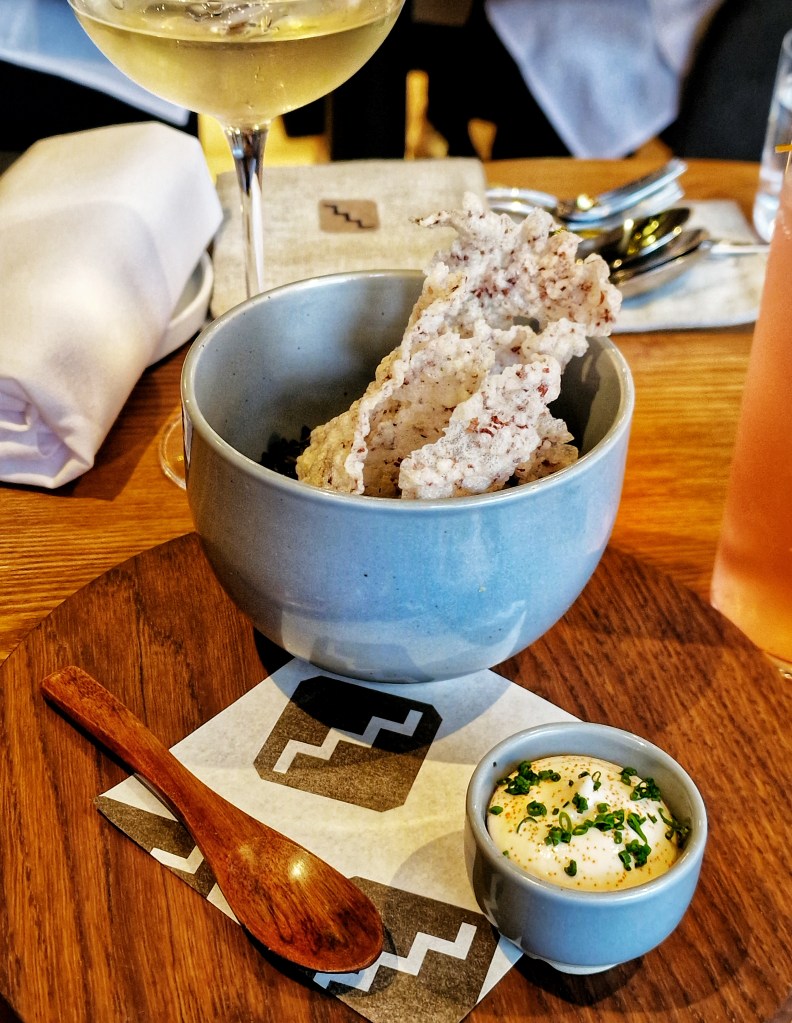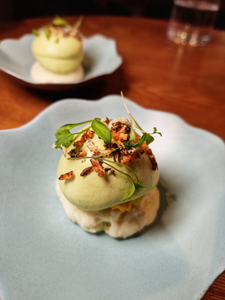 “Are you ready to start?” Absolutely yes! Service is sharp yet not overbearing, we were given enough time between each course to prepare ourselves for the next. To begin, crackers and a taramasalata-style dip which was a light and delicious introduction, too delicious as I found myself scooping every inch of that dip up, is it bad to lick a bowl clean in a Michelin starred restaurant? Sod it, I did it anyway.