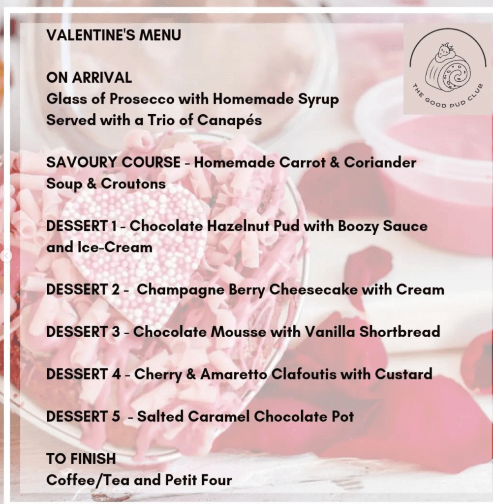 Discover a unique and delightful way to celebrate Valentine’s Day this year! Join The Cake Spa for their first Good Pud Club of 2024 on Friday, February 16th, at 8pm, for an evening filled with Valentine’s-themed desserts. It’s not overly soppy, making it perfect for a Galentine’s celebration with your besties, friends, or family. Bring along your loved one or your favourite people and indulge in an 8-course meal, featuring a glass of fizz as a welcome drink and 5 small dessert courses. From hot and cold puddings to savory starters and canapés, each course promises a delightful experience. All set in the charming ambiance of Main St Cafe in the heart of Whittington village, just outside Lichfield. Tickets are limited at £40 per head, so secure your spot for a sweet and unforgettable Valentine’s celebration!