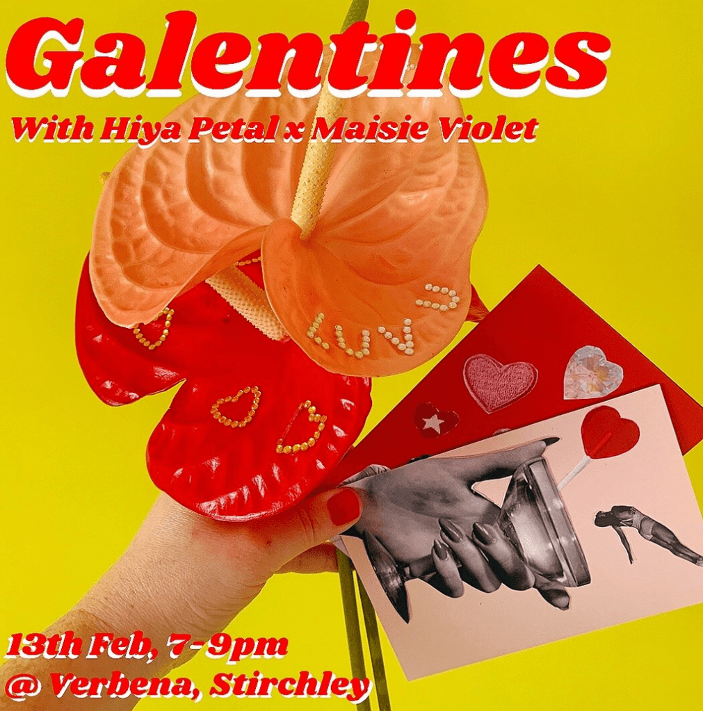 Calling all Gal Pals! Join Maisie Violet (An incredible creative specialising in maximalist interiors and DIY decorating hacks) and Hiya Petal (An amazing Midlands florist specialising in bold and beautiful blooms!) for the ultimate Galentine’s date night at the cosy and candle-lit Verbena. Embrace your creative side as you sass up your own Anthurium flower with heart and letter diamantes. Send some love with a hand-made collage card, and try your hand at marbling while upcycling a bud vase for your beautiful creation. Top it off with a slice of the best cake in town, made with love by Verbena. It’s the perfect evening of creativity, laughter, and sweet treats for you and your bestie. Date: Tuesday, 13th February | Time: 7-9 pm. Don’t miss out on the fun