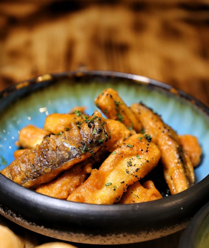 Scanning the menu I could see there was plenty of choice from fish to pork to a good variety of vegetarian options (lunchtime menu). We ordered around nine dishes with two/three dishes at most coming out all at different times. The first dish that came out was the Berenjenas con Miel (Aubergine chips with truffle – £6.50). They gave a wicked crunch and were absolutely gorged in truffle, we found ourselves fighting over them, so the first dish was a huge hit. Bread is a must, so we ordered two of these that were the toasted bread with olive and tomato (£5) it was nice but wasn’t much to shout out about, I used the bread more with the other dishes’ sauces then the tomato sauce it came with as I found it a bit bland.