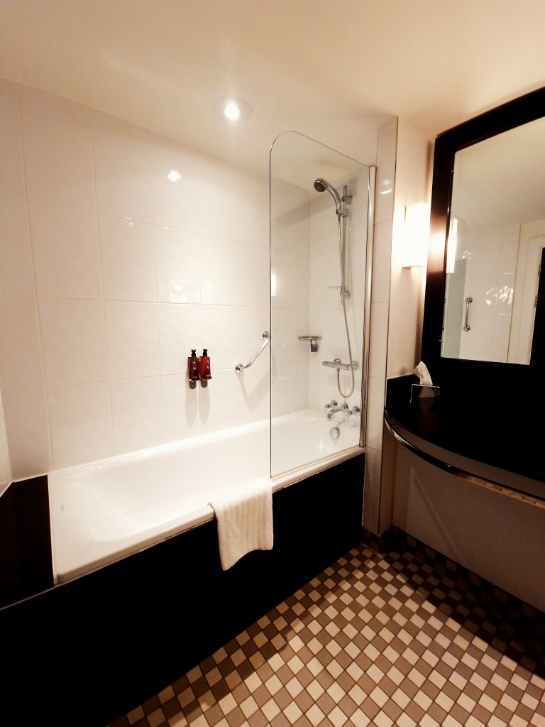 Upon entering the room, we noticed the size straight away, for a standard room it’s pretty impressive. The room included a super king bed, en-suite with bath and shower, TV, desk with chair, two lounge chairs and two glasses of prosecco which was a lovely welcome gesture. Unfortunately, there wasn’t much of a view as the windows looked out onto buildings however, we were pretty impressed with the room. It was very clean, completely spotless actually and there were spare toiletries and tea/coffee facilities which I was very happy to see. Plenty of wardrobe space and plenty of space in general to do some exciting pre-dinner zoomies! A standard room is priced from £80-£120.