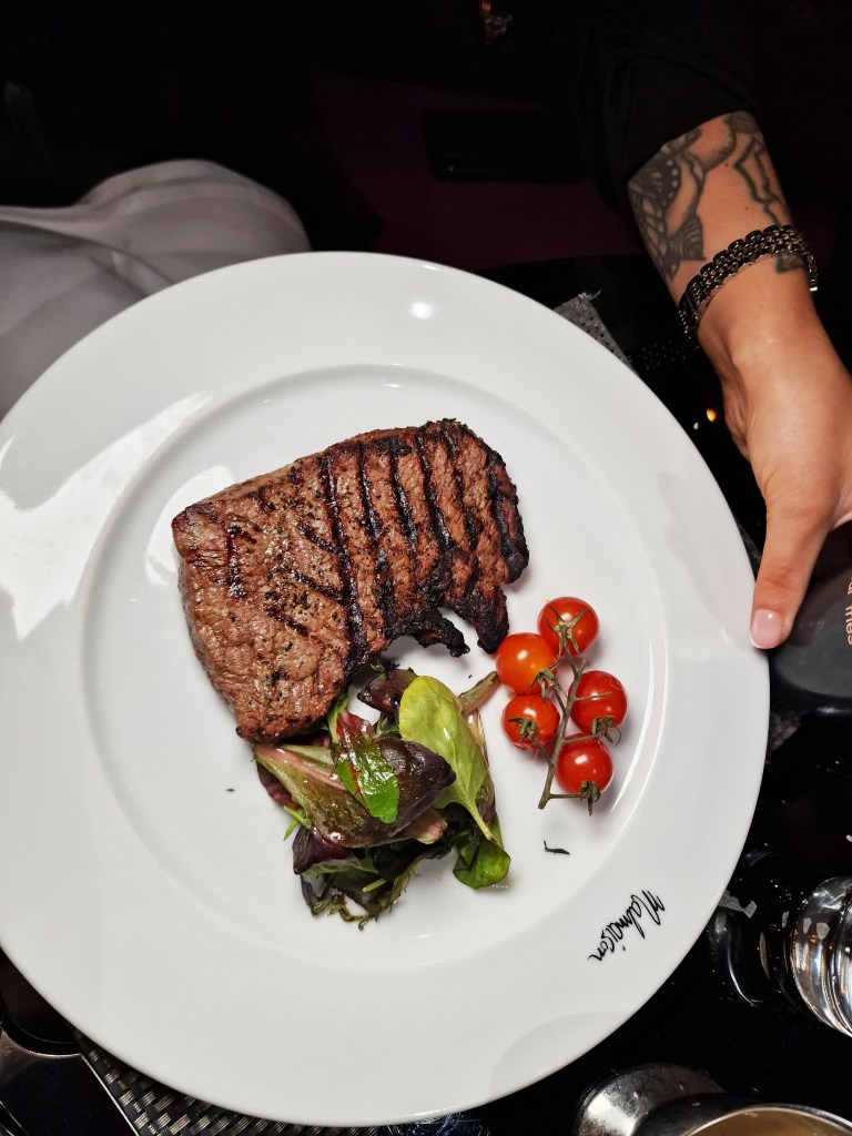 At 7pm we were called down for our dinner which took place in the Chez Mal Brasserie which is a very glitzy/glam restaurant that serves up British/American dishes with plenty of variety to cater for all. It was great to see a menu that catered for many allergies. From Tiger prawns to Slow braised Beef massaman curry, the menu was quite diverse, and the food was packed full of flavour. The curry was my favourite, and we ordered a couple of Negroni cocktails and prosecco. To finish we ordered the Chez Mal Vanilla Crème Brulee however it was a little bit bland. Service was sharp and attentive, and overall we enjoyed our dining experience.