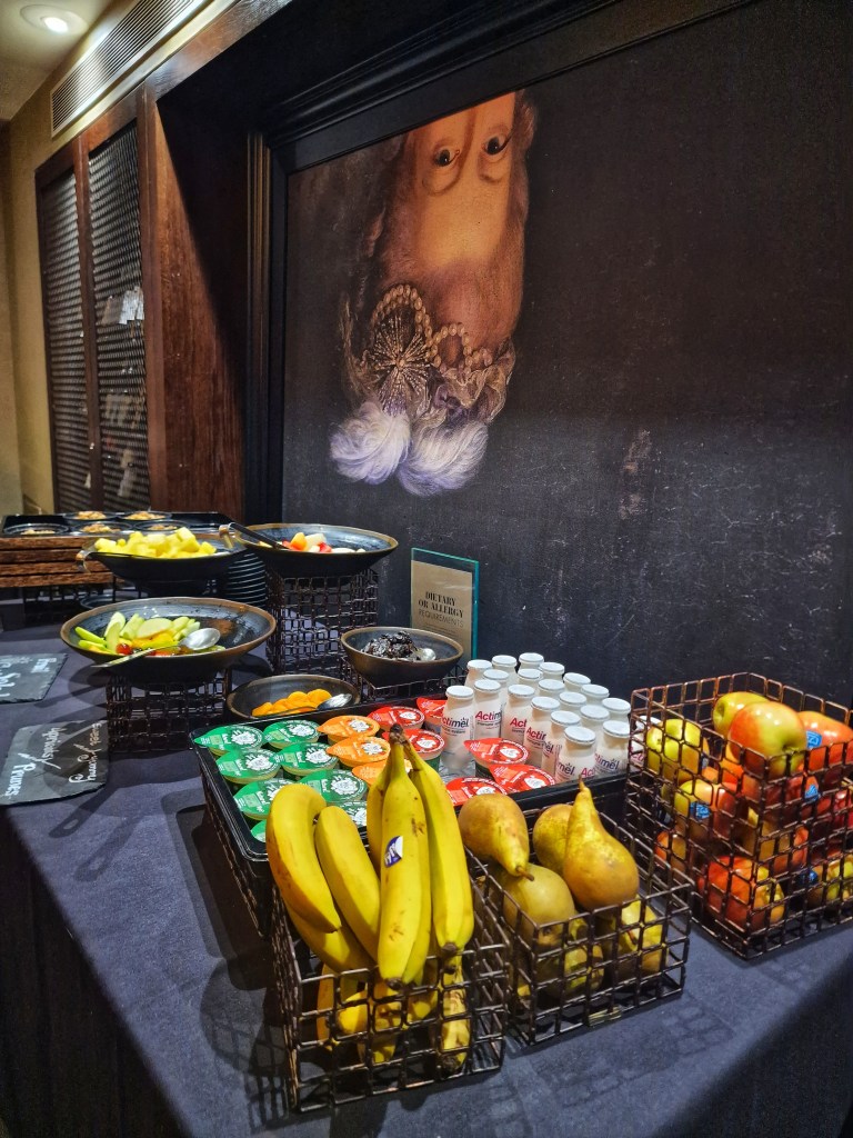 We headed downstairs to breakfast and tucked into a continental breakfast (£15) that included freshly baked pastries, a selection of cereals, fruits, fresh juices, and more. We were still quite full from our dinner the night before so we opted for cereal and pastries, all enjoyable. Again, service is very good and staff are very quick on refilling hot water/refilling the food, any mess made was cleaned up straight away.