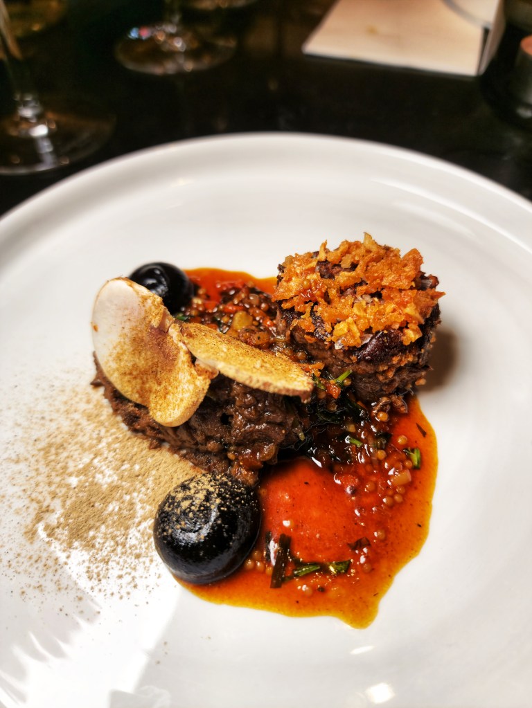Course 2 – Scampi: Brandade, Dill Emulsion, Gribiche, Peas, Beurre Blanc – was an enjoyable second course. The Brandade brought a creamy richness, the Dill Emulsion added a burst of freshness, and the Beurre Blanc tied it all together quite nicely.