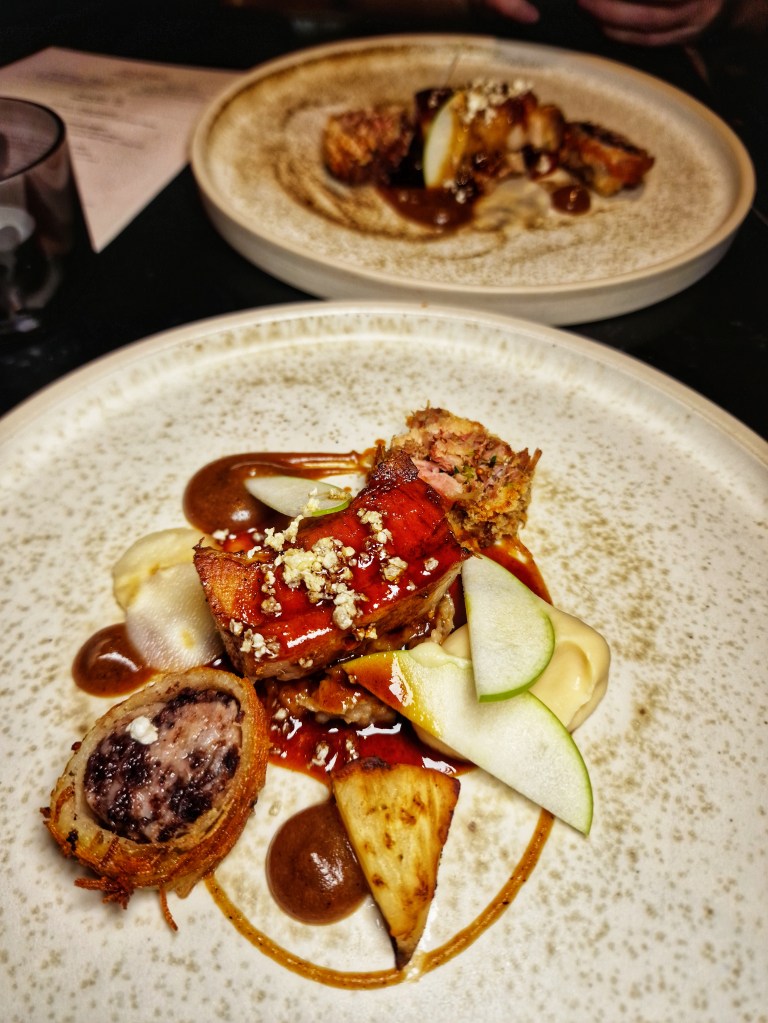 The next course was Smoked Sausage: Trio of Pork, Apple, Crispy Crackling, Salt Baked Celeriac, and Choucroute – The Smoked Sausage brought a rich smokiness, the Trio of Pork offered layers of succulence, and the combination with Apple, Crispy Crackling, Salt Baked Celeriac, and Choucroute was truly delightful.