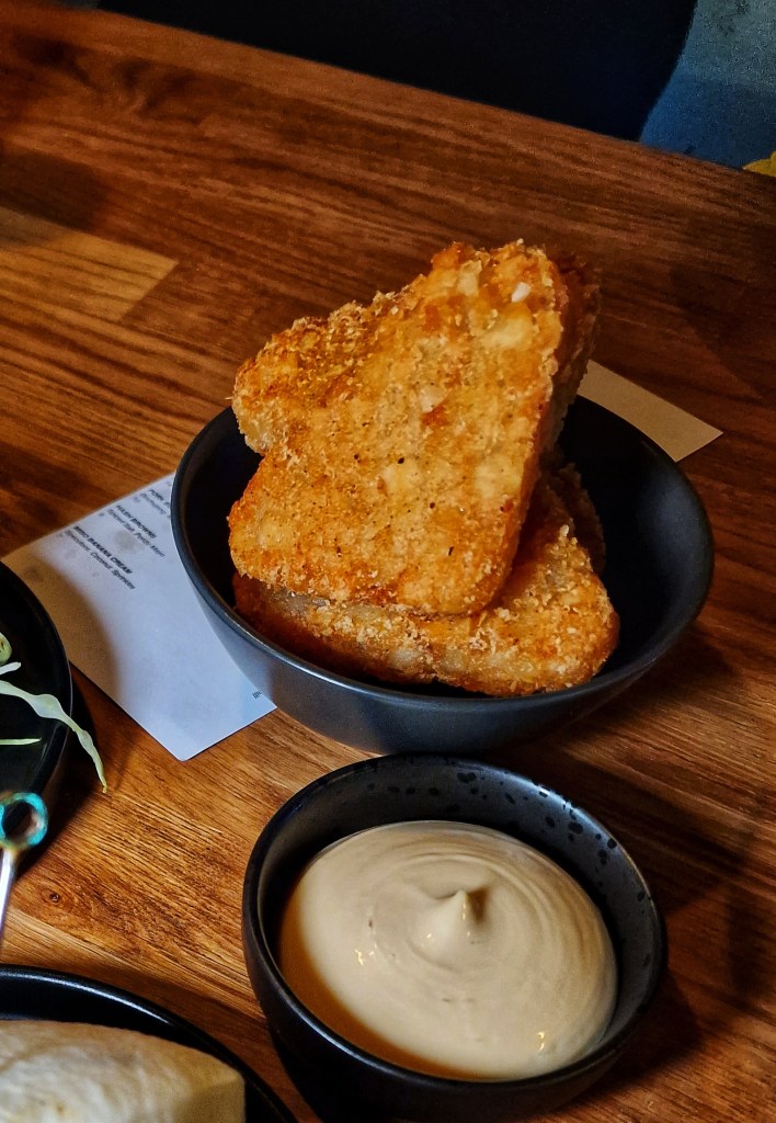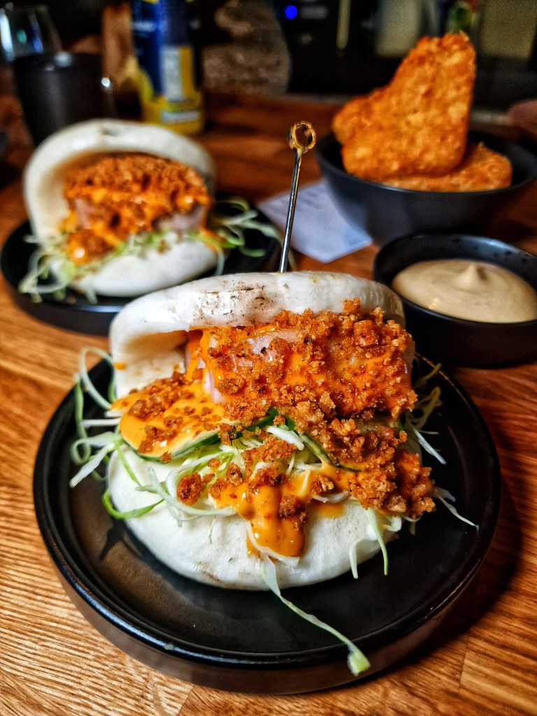 Suddenly my belly was touching the counter; it was almost as if my belly was trying to capture the attention of Erin to order more dishes – my gut has a mind of its own! And then, Ash placed down a glorious and almighty Pork belly bao with Gochujang, Miso, hispi, cukes – Lord Jesus, Christ on a stick, Mother of Mary – the food is immaculate, it’s hard to raise a complaint, how could you? This was just incredible culinary genius, and whilst eating my bao, I scanned their website to see if I could book another date – now this is a first. Our last dish was the hash browns. Hash browns, eh? But these were far from your salted hash browns you get from McDonald’s; oh no, these hash browns served with spiced salt and ponzu were little naughty buggers that can catch you out easily; they were bloody fantastic. Crunchy, with a pinch of spice and slight tart-tangy flavour which I really enjoyed.