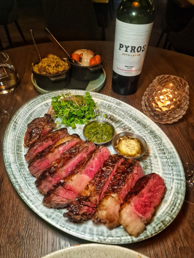 For our mains, we opted for steak, selecting our own 40–60 day dry-aged steaks from The Forge’s dry age fridges. We chose the 850g ribeye steak and added a touch of Truffle & Chive butter. When the generously portioned steak arrived, our mouths hit the table by its size and appearance, even James was starting to sweat a bit at the size of it! But, it was absolutely delightful! The meat melted in our mouths, and paired with the truffle butter, it was beautiful. Accompanied by sides of dirty mash and glazed chantenay carrots, it was so enjoyable and staff added to that enjoyment by the fantastic service they offered throughout our dining experience especially helping out with choice of drinks and what paired best with our dishes.