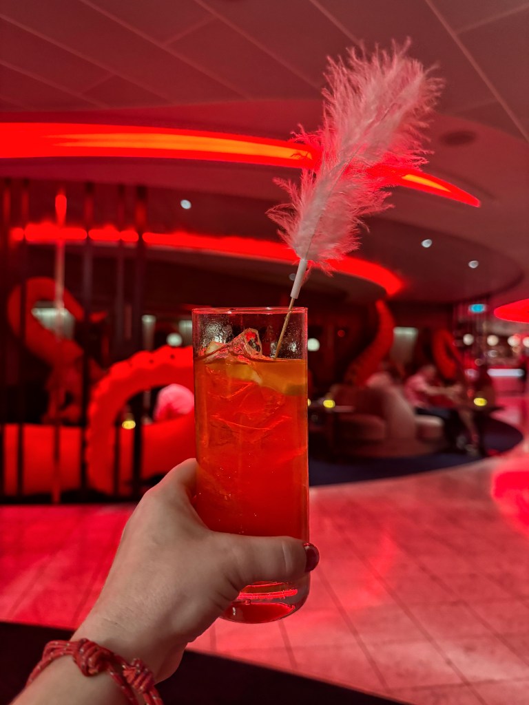With so many bars on board, there’s something to suit every taste. SIP, the champagne bar, and The Manor are standouts, but my personal favorite has to be The Dock House. The cocktails there were incredible, and we loved the lively atmosphere, especially when they had live music or karaoke nights. Another hidden gem for cocktail lovers is the Red Bar in Razzle Dazzle. Tucked away inside the restaurant, it offers unusual but very cool cocktails that we thoroughly enjoyed.