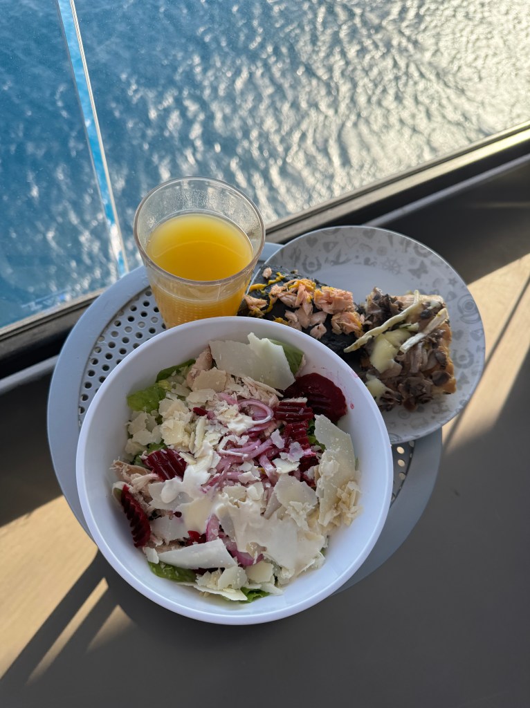 For breakfast, The Galley became our go-to spot. It’s the perfect place to start your day, and we couldn’t get enough of their fluffy pancakes and mouth-watering breakfast burrito. The variety of options at The Galley is extensive, and because it’s open all day, you can pop in whenever hunger strikes. It was a bit surreal to just help yourself to whatever you wanted without ever reaching for your credit card, but that’s one of the many joys of this cruise—no hidden costs to worry about.