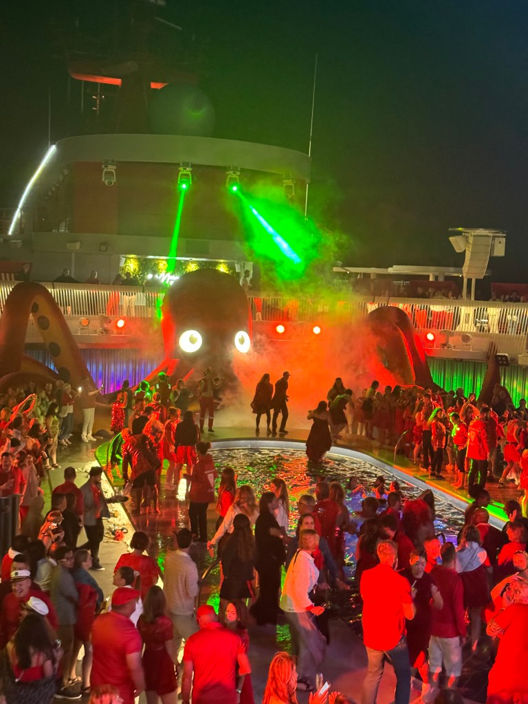 One of the standout experiences was Scarlet Night, Virgin’s signature event where everyone dresses in red, and the ship transforms into a pulsating sea of crimson. It’s the kind of night where you leave your inhibitions behind and immerse yourself in the vibrant energy—it’s an absolute blast!
