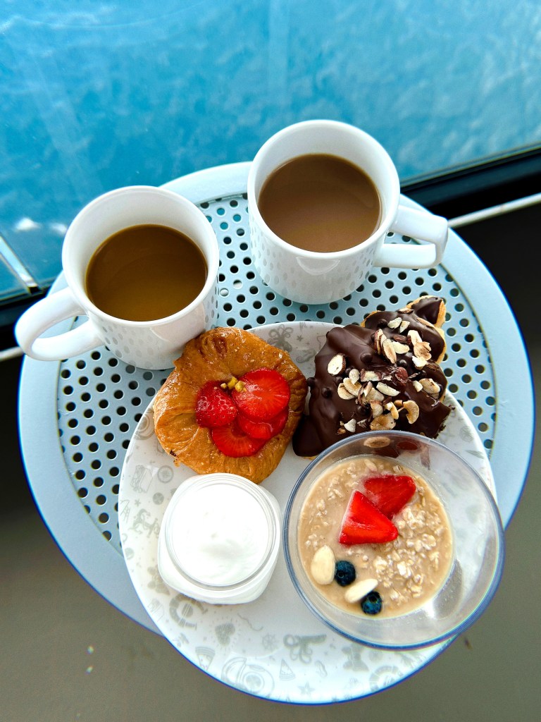 As for coffee, while you can get free coffee throughout the cruise, if you’re after something a bit more special, I highly recommend Grounds Club. They make a fantastic flat white, and the pastries are absolutely delicious too!