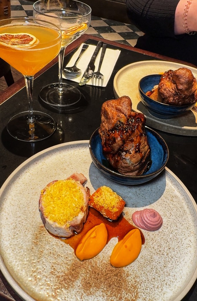 Then came the supposed star of the show: The Three Bird Roast. Unfortunately, it turned out to be the most disappointing dish of the night. Duck, chicken, and turkey ballotine with liver parfait and honey-glazed carrots arrived looking like canned cat food slapped onto a plate. There was no gravy—just a sad, measly squiggle of some sort of brown sauce. The ballotine was so dry and stodgy it felt like eating cardboard, and I had to keep gulping water just to try and swallow it. The liver parfait felt completely out of place on the plate, and I couldn’t for the life of me figure out why it was there. Where were the fluffy roast potatoes? Where were the comforting, classic elements of a roast dinner? This didn’t scream festive roast to me at all. For £44, I expected so much more.The Ultimate Yorkshire Pudding (an extra £6!) was anything but ultimate. Bland, cold, and stuffed with pork and sage stuffing that was somehow flavourless. Honestly, Aunt Betty’s frozen Yorkshires would have been an upgrade. Cutting into it revealed a soggy, sad mess that looked like something a cat might throw up. I was honestly in shock.