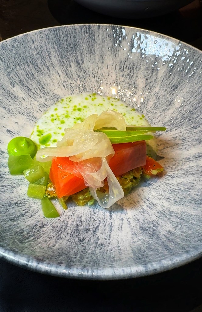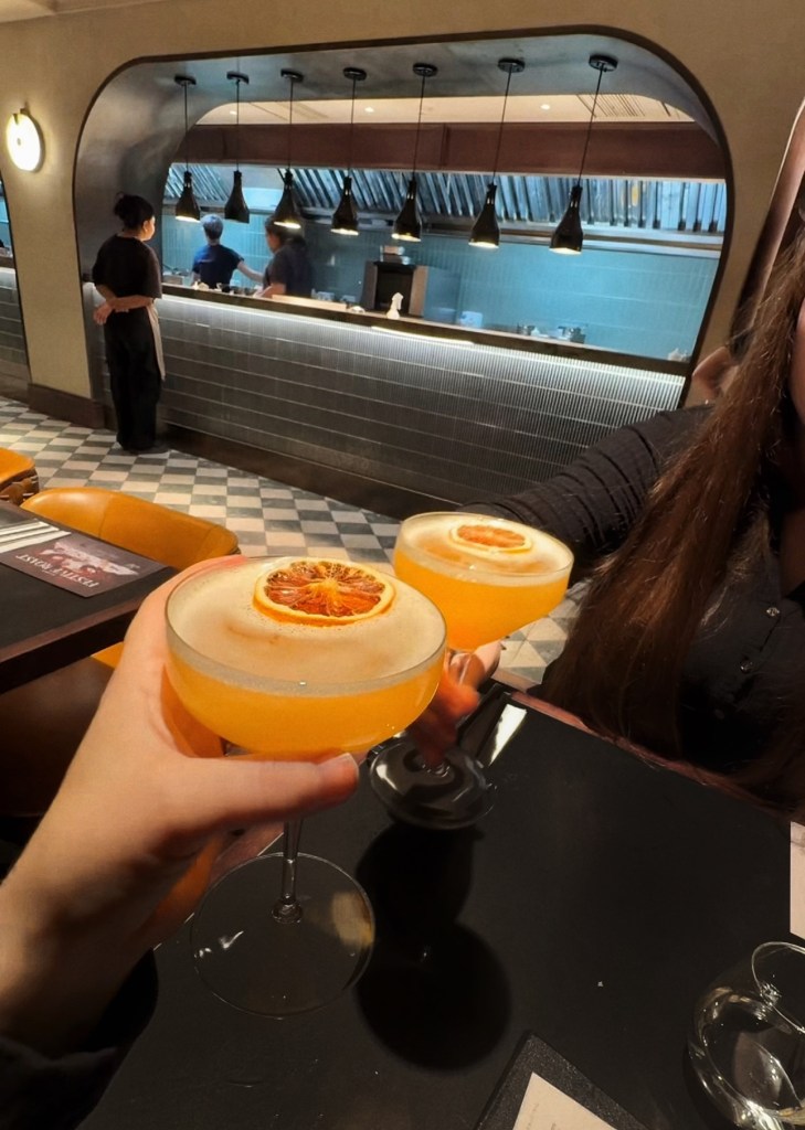 The festive roast menu is £44 for six courses, with an optional £33 wine pairing. We skipped the wine and fancied something non-alcoholic and sweet. When we asked for a recommendation, our server suggested a strawberry daiquiri. Great! I love a good alcohol-free strawberry daiquiri (especially after a past incident involving one too many alcoholic daiquiris, which ended in me throwing up something that looked like Bambi’s forest in flames). But when the drink arrived 12 minutes later, it was orange. Confused, I asked, “Is this a strawberry daiquiri?” The server smiled and confidently said, “Yes, it is!” I took a sip. It wasn’t. Alarm bells were ringing—what if I had an allergy to orange or apple? You can’t afford to make mistakes like that, and the night had already gotten off to a nervous start.
