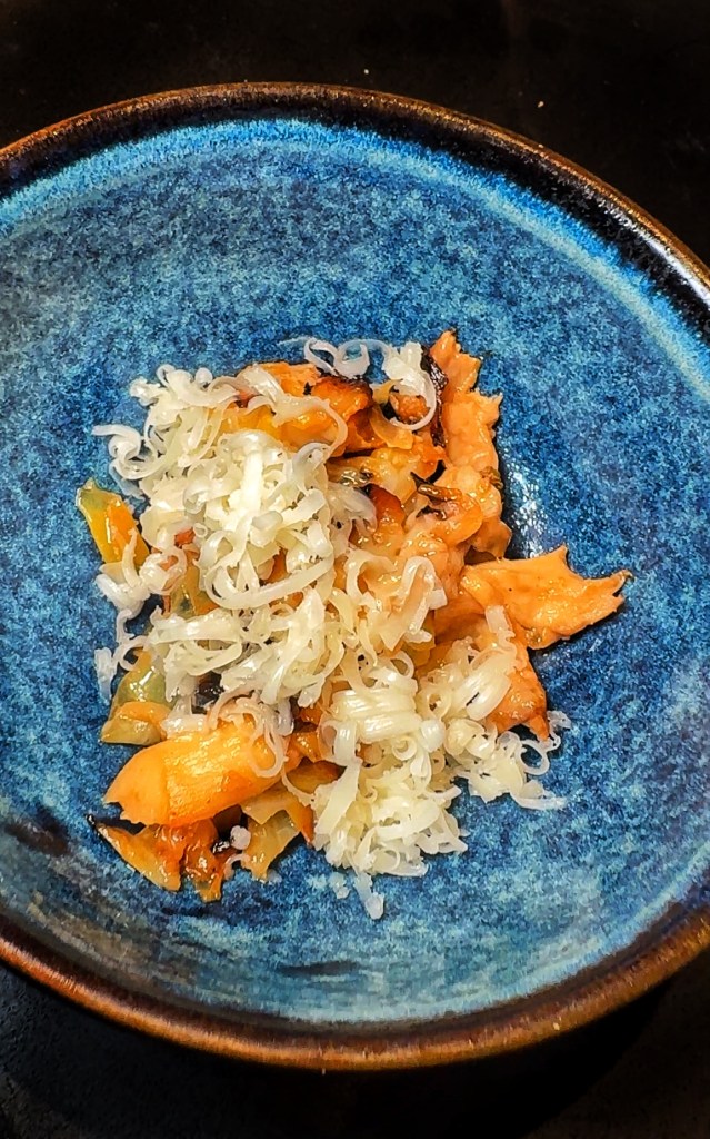 The first course, Pigs in Blankets (Pork Pressé with Sauerkraut and Burnt Onion), was decent. I’m not the biggest pork fan, but the sauerkraut added a nice tang that I enjoyed. I was starting to think there might be some hope for this meal.