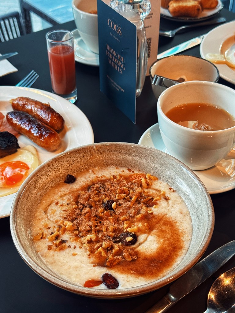The breakfast, included in our stay, was served buffet-style in the restaurant, offering everything from a traditional English breakfast to continental options, including a gluten-free section. The full English featured locally sourced sausages, crispy bacon, and free-range eggs, while healthier options included fresh fruit, yoghurts, and granola. The freshly baked pastries and pancakes were a perfect sweet start to the day. You can also order additional breakfast dishes such as porridge, baked eggs, and more.