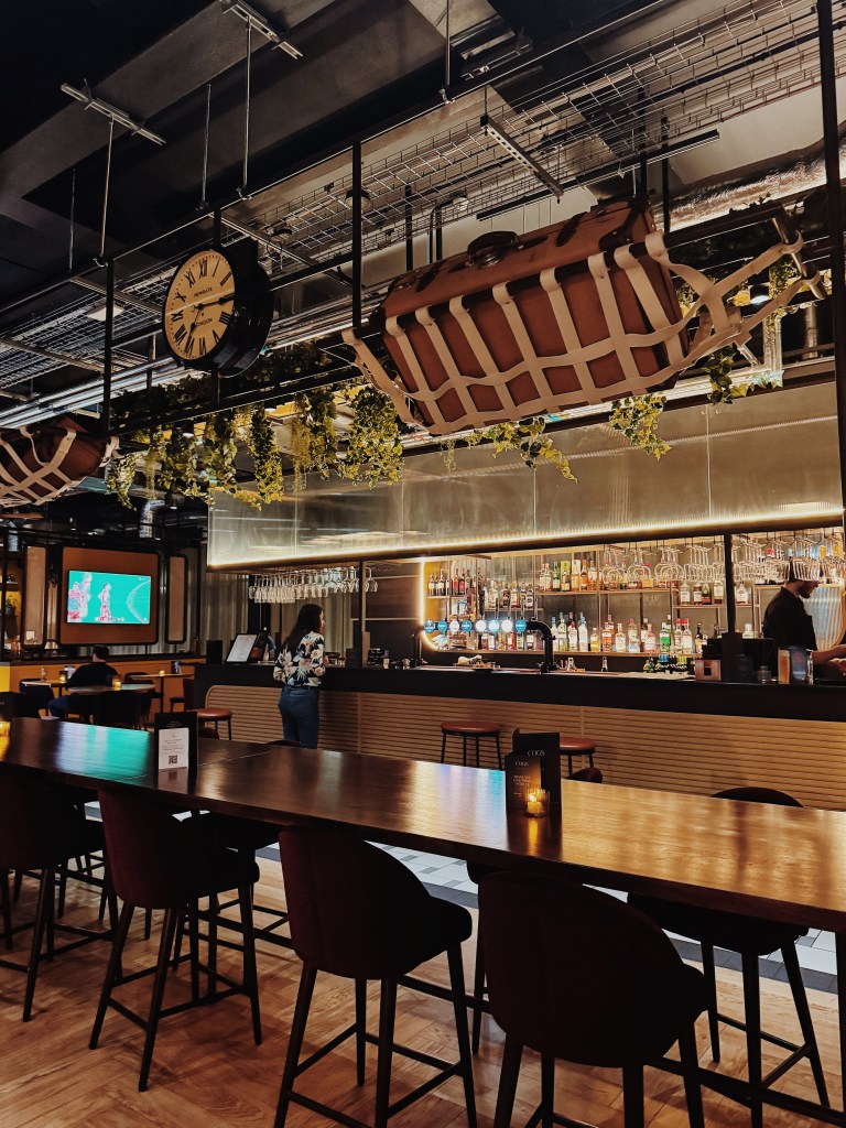 In the evening, we dined at Cogs Bar & Kitchen, the hotel’s in-house restaurant, which celebrates local artisan craftsmanship. The atmosphere was subtly lively, perfect for a Friday night. A standout feature was the self-serve wine wall – guests could pour their own red, white, or rosé wine, adding a fun and interactive element to the dining experience.