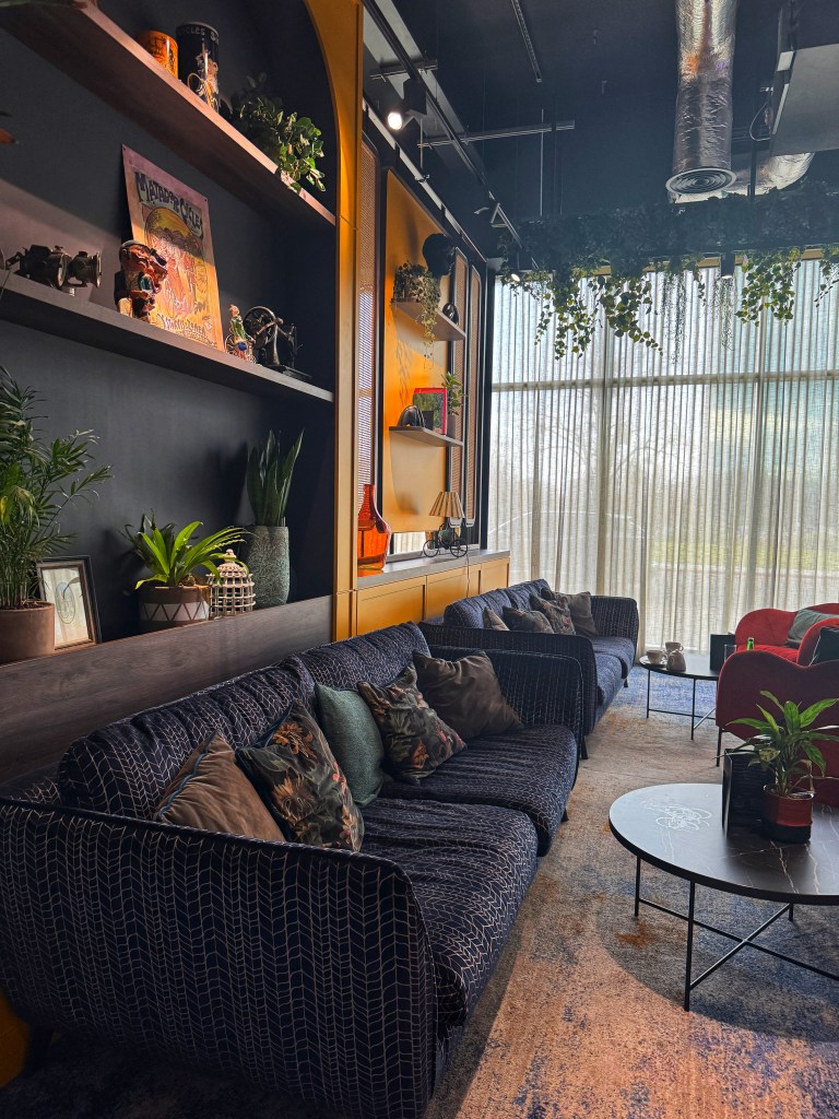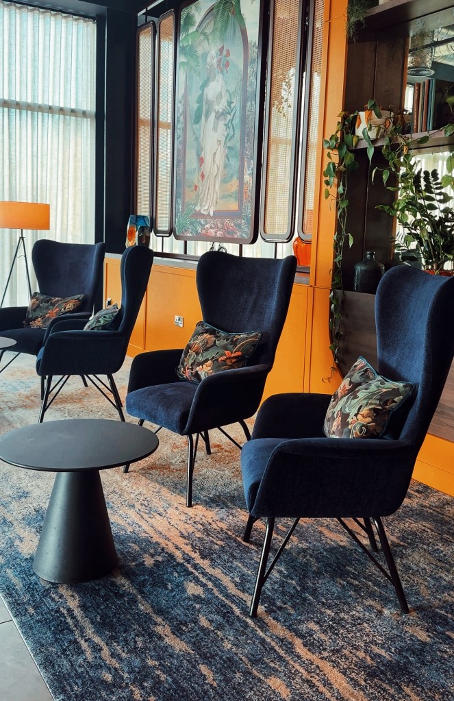 Walking into the hotel, I was immediately drawn to the sleek and modern design that seamlessly celebrates Coventry’s rich heritage. From medieval influences on the city’s vibrant 20th-century music scene, the hotel immerses guests in its cultural setting. A vintage car was displayed in the lobby, a real talking point – if my dad had been with me, he would have been Googling every detail about it trying to work out the year of the car – even though the information was clearly displayed! Instead, my friend Kelly pointed out the umbrella rental service, which was a nice touch.