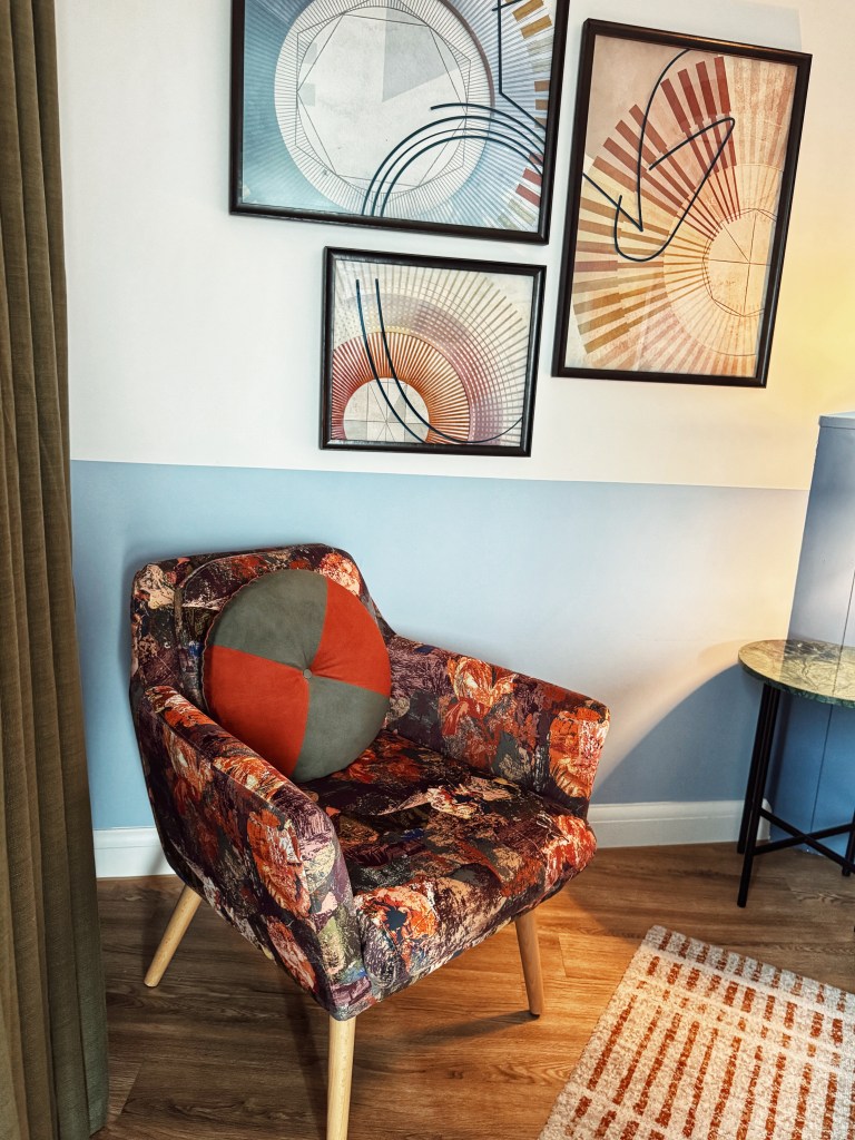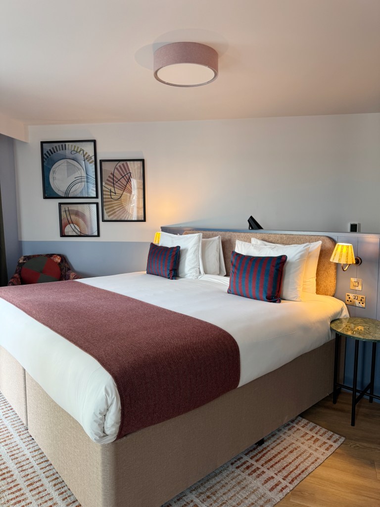 We booked a Super King Suite, and wow – it was huge! The room was homely yet uncluttered, featuring a luxury bed, smart TV, safe, free WiFi, complimentary still and sparkling water, artisan snacks, and tea and coffee-making facilities. A dedicated writing desk behind the bed provided a perfect workspace, while a cosy seating area was ideal for relaxing with a cup of coffee.